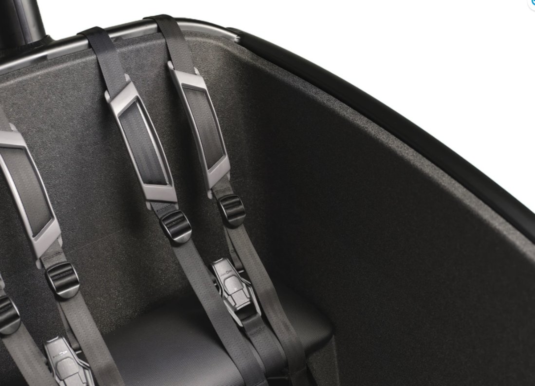 De FamilyNext Pro heeft een volledig vernieuwde bak met extra ruimte, een verbeterde beschermbuis en verhoogde rugleuning. De driepuntsgordels houden je kinderen stevig op hun plek, zelfs als je over hobbelige wegen rijdt. Dankzij de geveerde voorvork worden oneffenheden moeiteloos opgevangen – comfortabel voor je kinderen én voor jou.